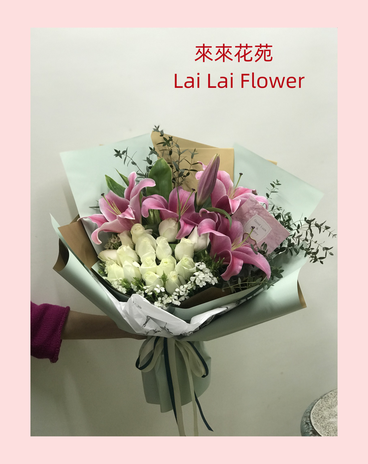 產品編號:B79 ﹋﹋﹋﹋﹋﹋﹋ 《花材說明》 白玫瑰16朵+粉百合 備註標示: ⊙外縣市及較偏遠地區 須另加運費 ⊙如遇季節因素、及外縣市配送 ⊙無上述花材.包裝時將以同等花材.包裝替代。 特殊備註:情人節價格另議